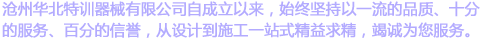 滄州華北特訓器械有限公司,坐落于河北省滄州青縣,靠近京滬高速公路,交通非常便利。公司現占地總面積10000多平方米,廠房8500平方米,是國內較早專業從事拓展訓練器械的研發、設計、生產、安裝、銷售為一體的現代化企業。